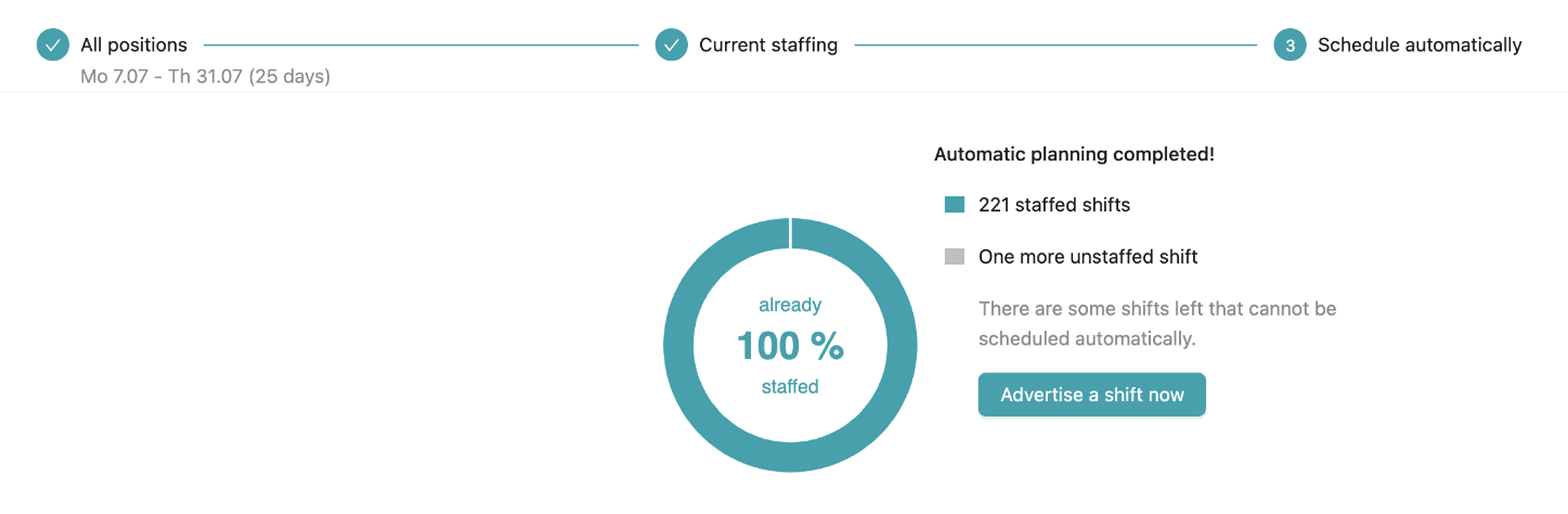 The assistant now automatically plans the staffing and shows the result in less than a minute.