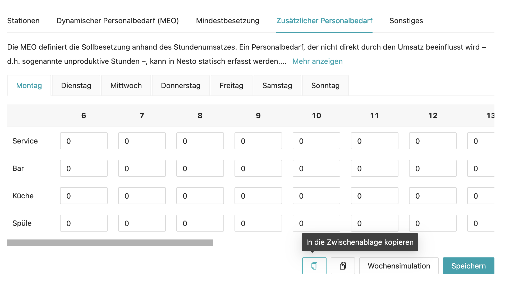 From now on, it is also possible to copy and paste the additional personnel requirements from one weekday to other weekdays. So if you have the same additional personnel requirement for your operation every weekday, you only need to enter it once and can copy and paste it for the other four weekdays.