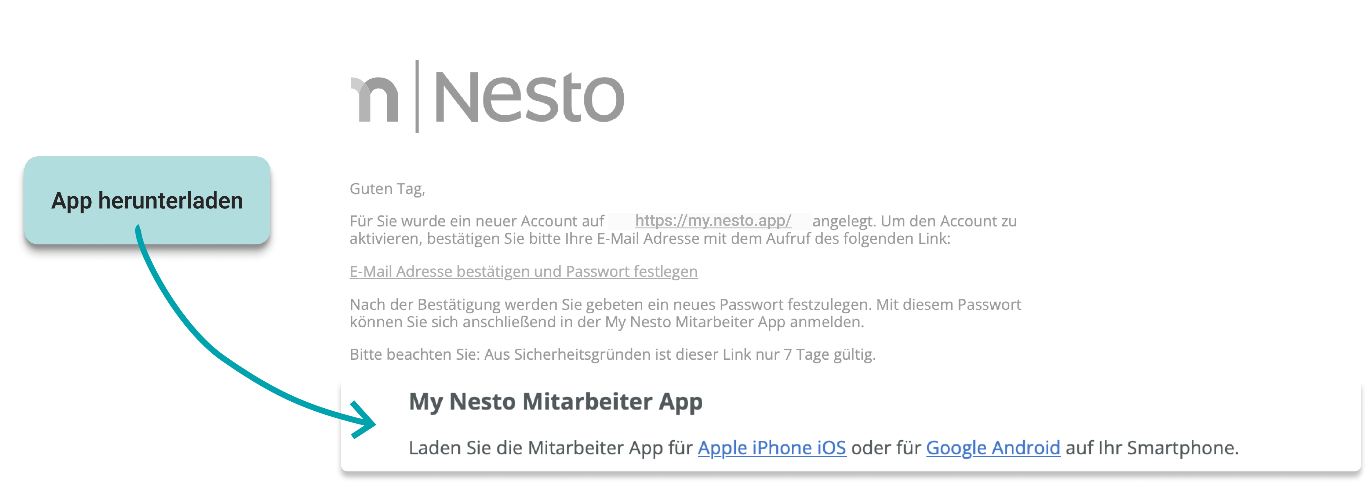 1. Öffne die E-Mail, die du von Nesto erhalten hast.