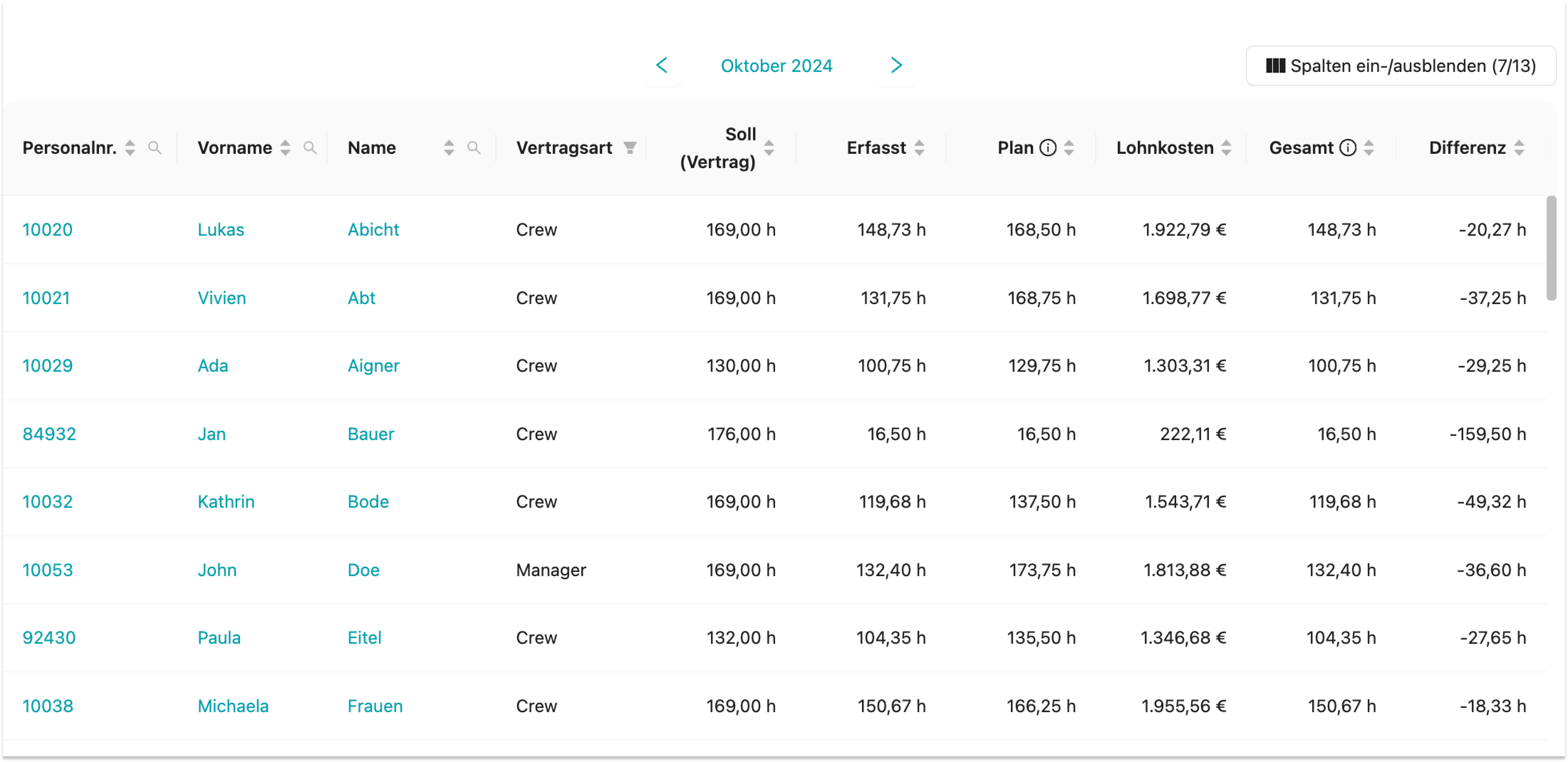 Spaltenfilter für bessere Übersicht: Blenden Sie Spalten, die Sie nicht benötigen, einfach aus. So konzentrieren Sie sich nur auf die Informationen, die für Sie relevant sind.